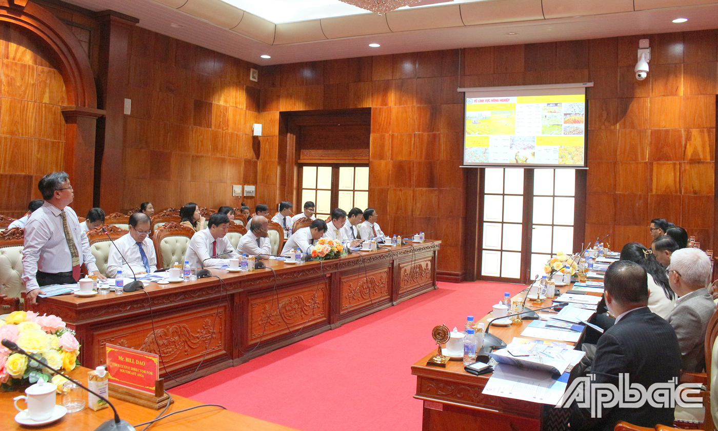 | Phó Chủ tịch UBND tỉnh Tiền Giang Nguyễn Thành Diệu phát biểu tại buổi làm việc. |